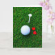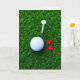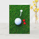 This design shows a white golf ball resting in the lower-left on freshly cut green grass, with a slim white tee standing upright above it like a quiet partner in the scene. Two small red heart shapes cuddle up close to the ball, their closeness hinting at a sweet “we’re in this together” kind of romance 🥰. Soft, diffused light falls across the course, making the grass look fresh and lightly textured without harsh shadows. The strong contrast between the bright white ball and tee and the deep green ground draws your eye, while the red hearts add a gentle love note ❤️. Across the upper portion, the greeting text sits in a simple red font that matches the hearts, leaving plenty of open space around the tee. A smaller line of text appears near the bottom edge in white, tucked neatly beside the ball without covering it. The overhead view keeps everything tidy and centered on the trio of details: the dimpled ball, the upright tee, and the two red hearts nestled in the grass.