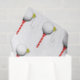 Golf-themed Christmas holiday gift wrap featuring a golf ball ornament on a holiday tee.