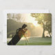 Golf bag at dusk on the green.