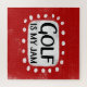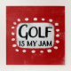 "Golf Is My Jam" is a fun text design with a white accent shape surrounded by white whimsical textured dots.