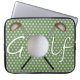 Golf clubs and balls make up this fun laptop bag. Customizable so you can add your own text and change the background color. Makes a great gift!