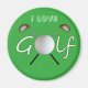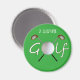Customizable "I Love Golf" Magnet. Green magnet with criss crossed golf clubs with a white golf ball in the center. Color of magnet can also be customized.
