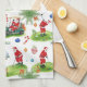 Add festive golf cheer to your kitchen this holiday season! This playful kitchen towel features Santa Claus golfing on a lush green course, swinging his club, riding a golf cart, and surrounded by golf balls, golf bags, and cheerful Christmas decorations like ornaments, candy canes, and holly. The humorous text “May the Course Be With You” adds a fun, golf-themed twist, making it perfect for holiday cooking, entertaining, or gifting to golf enthusiasts. Bright, modern watercolor style with vibrant holiday colors.