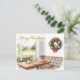 Send warm holiday wishes from the fairway with this elegant watercolor postcard featuring a festive golf-themed from clubhouse overlooking the course.