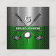 Golf Monogram Metallic Green and Silver Square Business Card