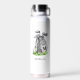 This elegant monogram water bottle features a stylish gray watercolor golf bag filled with clubs, surrounded by a touch of green grass. The design incorporates a classic serif font initial monogram on the bag, blending seamlessly into the artwork. Below the monogram, the full name is displayed in a matching serif font, adding a refined and personal touch. The monogram is currently in dark gray, almost black, to coordinate with the bag’s accents, but it can be customized to your preferred color.