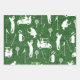 Golf pattern with golfer and golf cart on green wrapping paper sheets