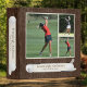 Make this a special gift by adding photos of your golf buddy. Faux dark wood background. Three photo templates on front. Golf balls accent light tan banner under photos on front and on spine. Another photo template on back.