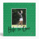 Make this a special gift by adding a photo of your golf partner. Green background with club irons and golf ball pattern. Photo template on front with club iron left and putter on right. Golf balls accent white banner under photo on front and on spine. Photo template on back with "Hole in One" inscribed underneath.