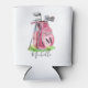 This stylish monogram can cooler sleeve features a gray watercolor golf bag filled with clubs, surrounded by a touch of green grass. The design incorporates a classic serif font initial monogram on the bag, blending seamlessly into the artwork. Below the monogram, the full name is displayed in a matching serif font, adding a refined and personal touch. The monogram is currently in dark gray, almost black, to coordinate with the bag’s accents, but it can be customized to your preferred color.