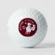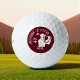 A rounded dark red design for a stylish golf player, personalized with his name, age and a graphic illustration of a man with a golf club.
