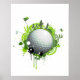 Modern illustration with golf as the theme. A golf ball represents the Earth with golfers and flags around it in tones of green. Fun and modern design for the golf lover.
