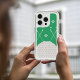 This sports themed Speck brand phone case is ready for your name or other personalized text. Created in a simple patterned background of golf clubs with a large ball in the foreground, Choose from a variety of sizes and styles for iPhone in the drop down menu.