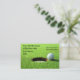 Simple new golf theme business cards template with image of a golf ball on the golf course green near the hole and layout you can customize online. Created for anyone involved in golf lessons, golf supplies or equipment, or a golf club.