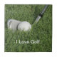 Golf theme ceramic tile with closeup photo of a golf club and golf ball in the grass. Use this as a trivet or add a frame and use it as wall decor.
