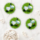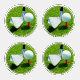 Set of four cool golf theme drink and beverage coasters designed with graphic of a golf ball on a golf tee and golf club you can use to serve drink and beverages to family friends or guests.