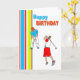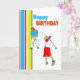 Golfing themed birthday card with vertical stripes. Beautifully designed in zingy bright colors.