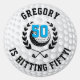 Simple, beautiful, golf ball inside wheat laurels with a white/gray golf ball background. Templates for name, age, and your text in black. Colors can also be changed in the design tool.