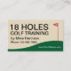 Golf trainer and instructor business card design in a clever yet simple style with golf 18th hole and simple layout for a golf training class instructor.