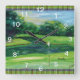 An original watercolor painting by Anne Ormsby of a golfing green adorns this lovely wall clock.