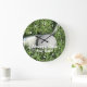 Golf wall clocks with photo of a golf ball and golf club on the clock face in this sports wall decor clock design for your men, teenage boys and a den or recreation room.