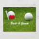 Golf wedding bride and groom tee off with love postcard