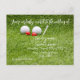 Golf Wedding Invitation card for Golfer with golf ball and red heart on green grass for bride and groom golfer