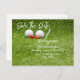 Golf Save the Date Wedding Invitation card with two hearts on green for golfer