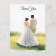 Celebrate your perfect day with this elegant Golf Wedding Thank You Card featuring a joyful bride and groom golfing together on a lush green course. Designed in a soft, realistic watercolor style, the couple’s faces are subtly blurred to create a timeless and universally relatable look.