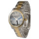 Very good quality watch that looks good whether dressing up or down. The band is sturdy. The watch is rather large so might not work for smaller folks. Recommended as a good gift. Printing is just a touch light but adds a nice touch of personalization.