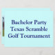 You can personalize all the text on this bachelor party invitation. You can change the text and number on the front and use this for other types of golf invitations. The design features a golf coarse hole.