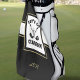 Fun golf design features "Let's Go Clubbin' " in the center in white type arranged with two black golf clubs and a golf ball all on a white background framed in gold. The bottom portion contains a modern template for custom monogram, name or text of choice in gold color. Message below this listing or email beachpause@gmail.com with custom color requests.