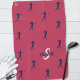 Cute golf design features a female golfer silhouette repeating pattern in dark blue on a trendy solid magenta red background. Add custom name and single letter initial in pink and white script with the easy to use modern template. All colors of this design are easily edited in the design tool. Use the message feature if you have a question or would like to request a custom color.