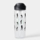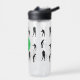 Black and white silhouette pattern of golfers golf swings on monogrammed water bottle.