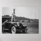 Golfer Teeing Off on Top of Car, Black and White Poster