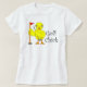 Golfing chick in curly text with a yellow chick holding a golf club and the flag in a golf hole is a funny gift design for golfers.