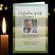 A special celebration of life funeral program featuring a background photo of a golf course - easily switch the background golf course photo with your own photo/course. Add a photo of your loved one to the front and back and custom text to all four sides - an obituary, order of the service, poem, thank you message, etc. This program is so easy to personalize - just click “personalize this template” to change the text and photos or click edit to customize even further. This is truly a one-of-a-kind program that people will cherish forever.