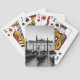 Stylish photo playing cards with a row of traditional gondolas in the water with Venice in the background in Italy in black and white.