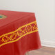 Years ago I got a matching runner from elsewhere and was so thrilled to find this same pattern offered as a tablecloth. The material is very high quality and it is well-constructed. Also it got here just in time for my party tomorrow! Would buy from this seller again. Colors are very sharp. It’s perfect. Well done
