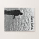 Let's get away from it all and go fishing! Easily customize or remove the text on this jigsaw puzzle which features a black and white image of a solitary fisherman standing on a rock ledge at Seneca Lake in Geneva, New York. The text reads: Gone fishin'