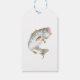 This charming gift tag features a lively illustration of a grey and brown fish, captured in mid-jump, adding a playful and dynamic touch to any gift. The fish's colors, a blend of natural grey and earthy brown, are rendered with a sense of realism and detail that brings the image to life against the simple, clean background of the tag. This design is perfect for enhancing gifts related to outdoor activities, fishing enthusiasts, or for anyone who appreciates the beauty and freedom of aquatic life. The tag’s neutral color palette ensures it complements a wide range of wrapping papers, making it a versatile choice for various occasions.