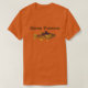 A basic t-shirt with fish print and words "gone fishing". A comfortable everyday tee for him. Public domain fish graphics used in this design.