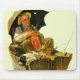 Artist: Norman Rockwell | Sleeping old man & dog in rowboat w/multiple fishing lines