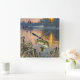 Fish being reeled in graphic wall clock.