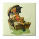 Artist: Norman Rockwell | Sleeping old man & dog in rowboat w/multiple fishing lines
