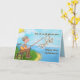 Fun Gone Fishing theme retirement. card with blue sky, lake and grass scenery background and man sitting on a log with his fishing rod, tackle box and bait. Customize inside text with your greeting, message and signature. Has a verse that you can remove or replace if you wish.