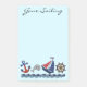 Graphic illustration of nautical pattern with sailboat, ship's wheel, anchor, and whale. Great for ocean lovers for any special occasion. Each 4”x6” pad comes with 50 sticky notes printed in full color. You can add monogram, names, or message.