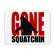 Large, bold font text says GONE SQUATCHIN, (just like Bobo!) with a graphic sasquatch or bigfoot creature walking by.