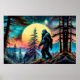 Gone Squatchin' Colorful Sasquatch Landscape Poster