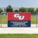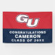 This logo features the bold, stylized letters "GU," which stand for Gonzaga University. The letters are outlined with a striking red and navy blue border that adds depth and dimension to the design. The clean and modern font style emphasizes the school's strong athletic identity and academic pride. The combination of red, white, and navy blue reflects Gonzaga’s official colors, creating a powerful and recognizable symbol of the university's spirit and tradition.